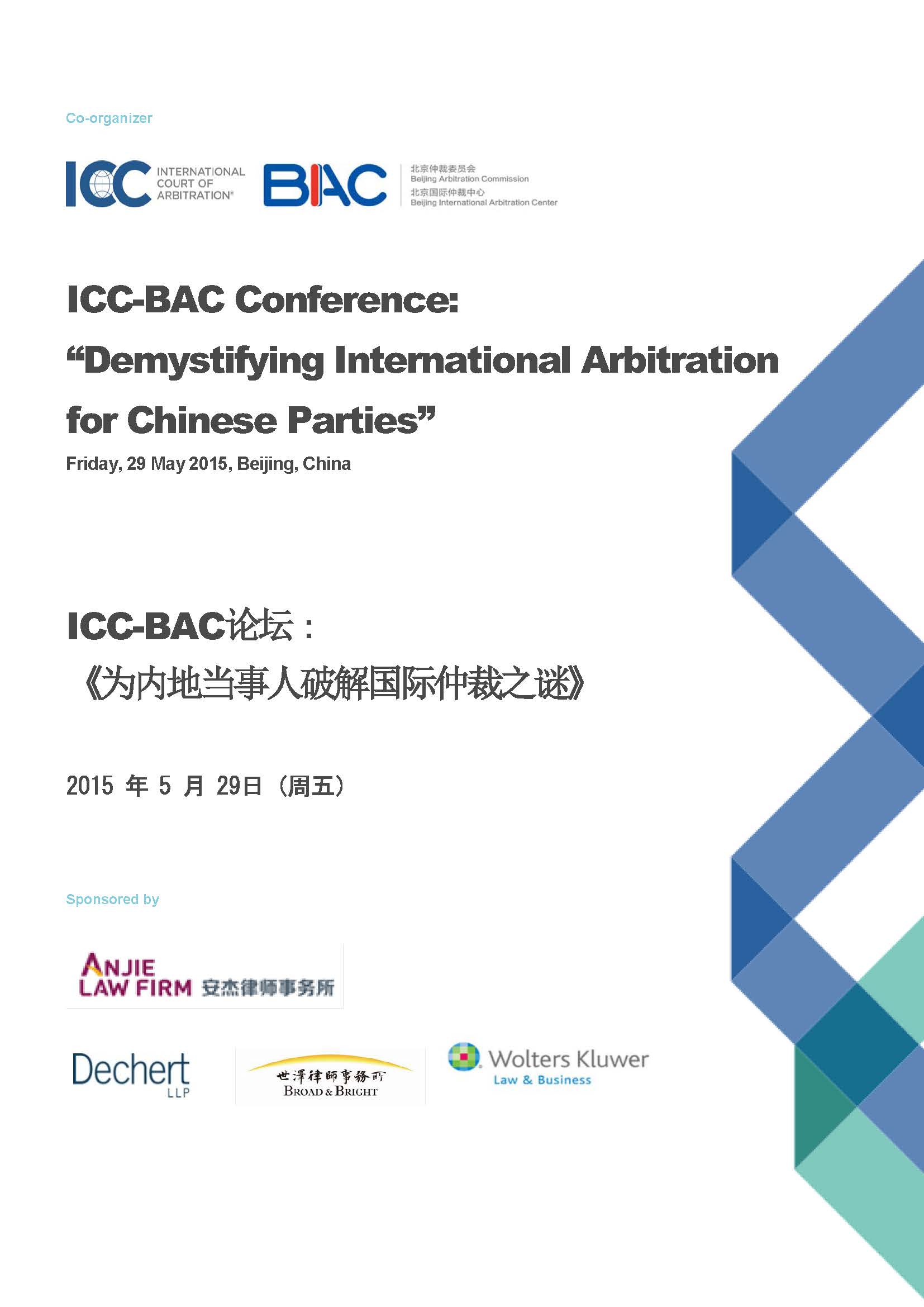 ICC-BAC论坛:《为内地当事人破解国际仲裁之谜》