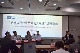 2015年4月30日下午,由北京仲裁委员会(以下简称本会或北仲)主办的“建设工程仲裁的实践及展望”高峰论坛暨纪念北京仲裁委员会成立20周年仲裁员沙龙特别策划系列(一)在本会国际会议厅成功举办。本次高峰论坛作为北仲成立20周年纪念活动的第一次活动,特别邀请最高人民法院民一庭法官关丽女士,本会仲裁员冯志祥先生,本会仲裁员、中国建筑股份有限公司副总法律顾问兼法律事务部总经理秦玉秀女士,北京市营建律师事务所合伙人张世星先生担任论坛嘉宾,并由本会仲裁员、北京市通商律师事务所高级顾问赵杭先生全程主持。本会仲裁员和来自建设工程领域的专业人士共计120余人参加了本次高峰论坛。