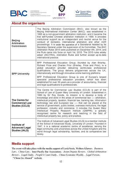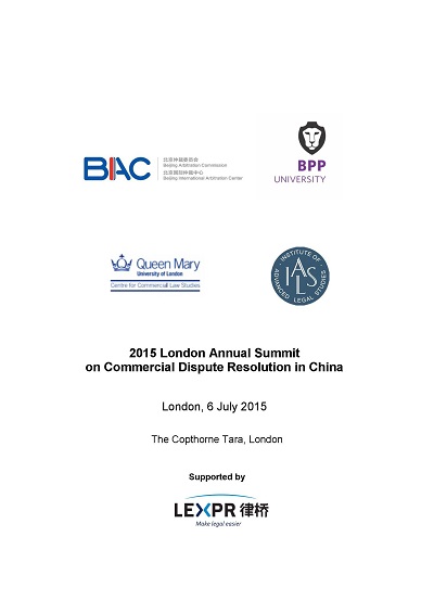 The Beijing Arbitration Commission (BAC), the BPP University(BPP University), the Centre for Commercial Law Studies, Queen Mary University of London (CCLS), and the Institute of Advanced Legal Studies, University of London (IALS), are jointly organizing the “2015 London Annual Summit on Commercial Dispute Resolution in China”. The event will take place in London on 6th July 2015, with the media support of LexisNexis, Wolters Kluwer,Business Law,China Law,Inter-Pacific Bar Association,Asian Dispute Review,Global Arbitration Review,Legal Daily,People's Court Daily,China Economic Weekly,Legal Person,“China Go Aboard”website.