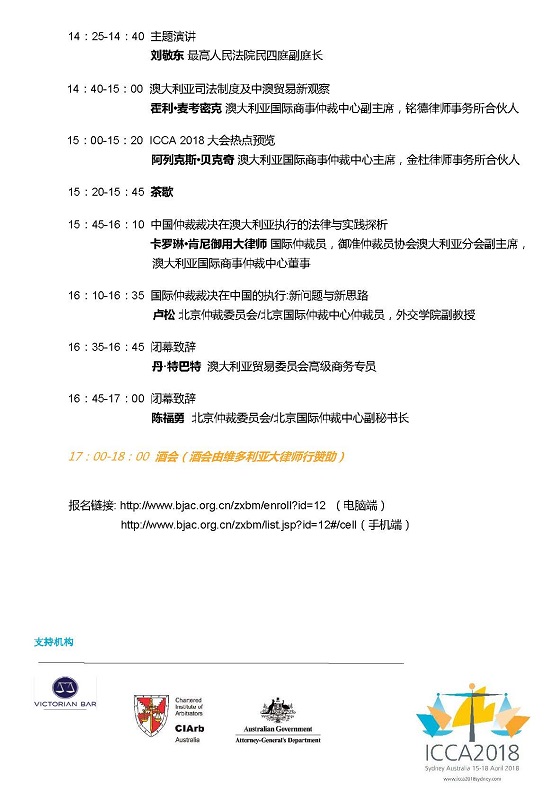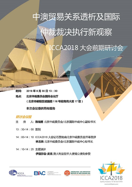 北京仲裁委员会/北京国际仲裁中心诚邀您参加中澳贸易关系透析及国际仲裁裁决执行新观察——ICCA2018大会前期研讨会!