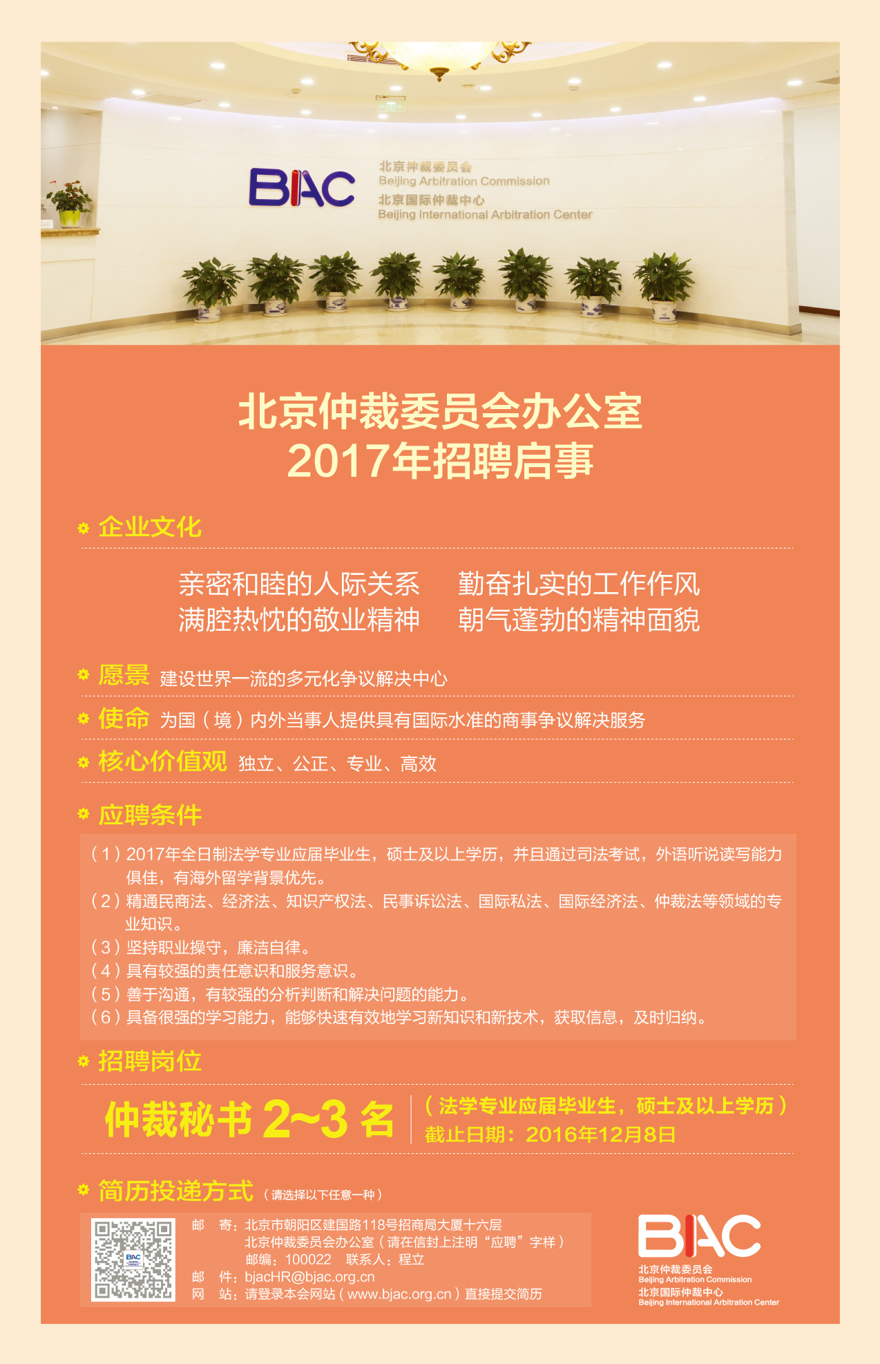 仲裁秘书 2-3名(法学专业应届毕业生,硕士及以上学历)