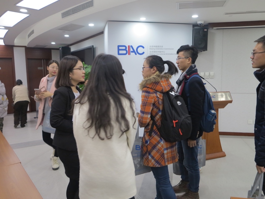2016年11月24日下午,中国政法大学(以下简称“法大”)法学院分团委组织的“走进”系列活动之“走进北京仲裁委员会/北京国际仲裁中心”在北京仲裁委员会/北京国际仲裁中心(以下简称“北仲”)第一仲裁厅顺利举行。由十余名学生组成的法大学生代表团到访北仲,北仲工作人员热情接待了代表团,并和同学们进行了深入的专业交流。