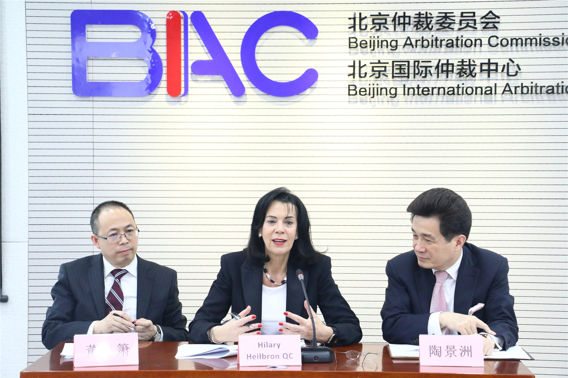 2月27日下午,第十一期公司法务论坛--国际商事仲裁实务技能研讨会在北仲国际会议厅顺利举行。英国布里克大律师行的希拉里·海尔布伦御用大律师结合自身实践经验阐释了国际仲裁实务技能“秘技”。北仲仲裁员及德杰律师事务所亚洲业务执行合伙人陶景洲先生、北仲仲裁员及安杰律师事务所合伙人董箫先生分别担任主持人和点评人。希拉里·海尔布伦御用大律师分享了仲裁参与人之间的沟通互动经验,特别是在如何选择仲裁员、庭审辩论技巧、交叉询问等方面的分析阐述,引发了与会人员的深入交流与思考。