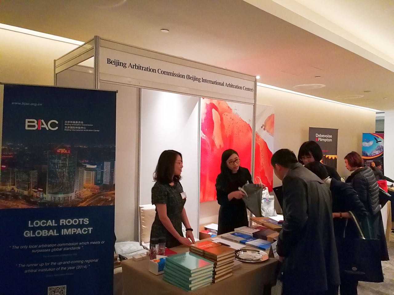 与此同时,会场还设置了展台区域,部分顶尖律师事务所和机构等设台展出。北仲受邀参与设台展示,提供了包括北仲组织编写的《中国商事争议解决年度观察报告(2016)》,组织翻译的《遇/预见未来的法律人:美国30名顶尖调解人的成功路径》、《补偿的正义-美国如何应对灾难》、《仲裁在中国:法律与文化分析》、《浅谈香港仲裁法》,以及自2015年4月1日起正式实施的新仲裁规则等在内的成果展示,并且与前来咨询的中外企业法务及其他法律界同仁进行了交流。