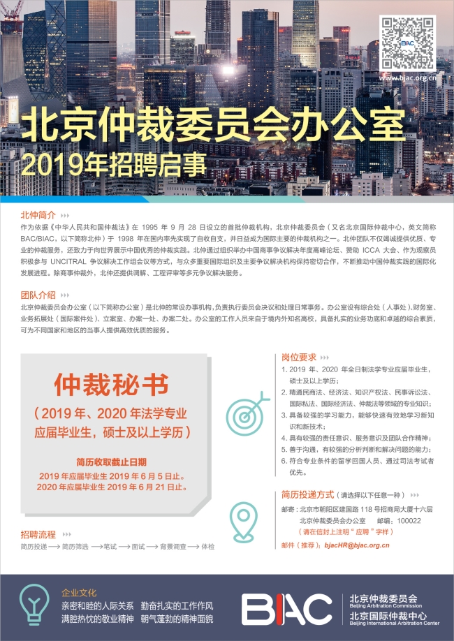 北京仲裁委员会办公室(请在信封上注明“应聘”字样)