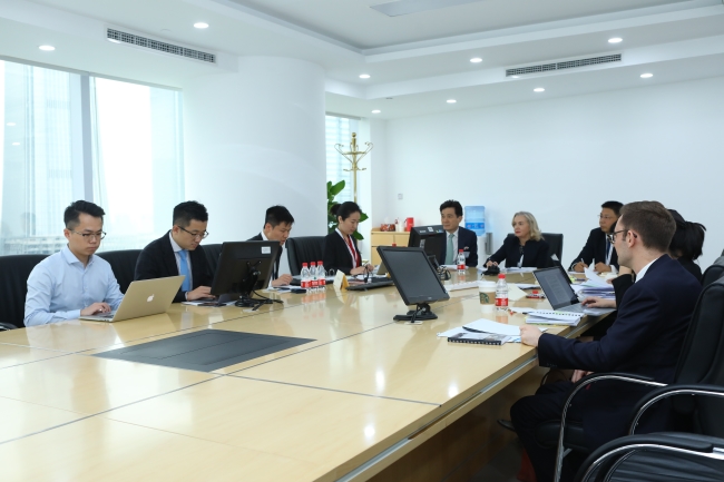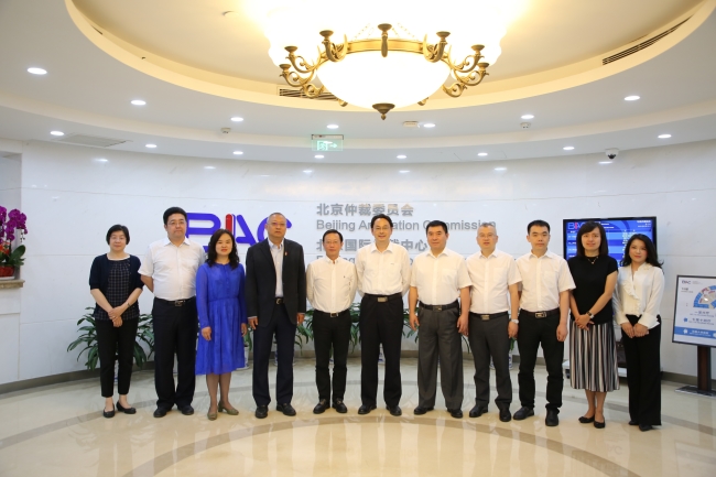 5月6日,平安集团智慧仲裁项目人员到访北仲,北仲品牌管理高级主管许捷和信息化管理高级主管胡怿负责接待,并与来访人员就相关议题进行了友好交流。