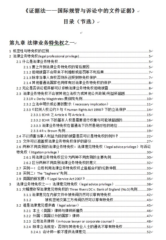 鉴于中国企业有越来越多的机会要应对国际诉讼与规管,我希望尽快将相关的内容传播出去,所以授权北仲发表新书中的部分章节,以飨读者。这些章节除了第一章是对全书的一个概述外,其余五章都是关于如何防守的文件特免权制度。(目录附后)