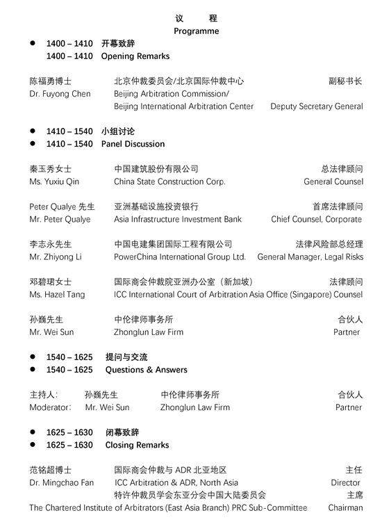 本次交流会旨在对国际建设工程的法律与金融风险进行交流,并探讨该领域争议解决实务问题,加强涉外律师及相关从业人员对国际建设工程法律问题及建设工程项目融资的认识与了解,并将其更好地运用到实务工作中。同时也积极推动国际商事仲裁在国际建设工程领域的运用。