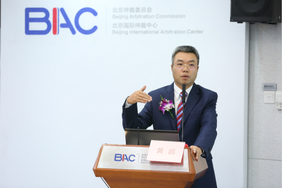 随后,金杜律师事务所争议解决部管理合伙人黄滔先生致欢迎辞。他介绍了今天前来与大家交流的四位合伙人及背景情况,并表示,希望此次与北仲共同举办的活动能给大家带来收获,同时期待在其他的热点话题上与北仲加深合作,进一步展开交流。