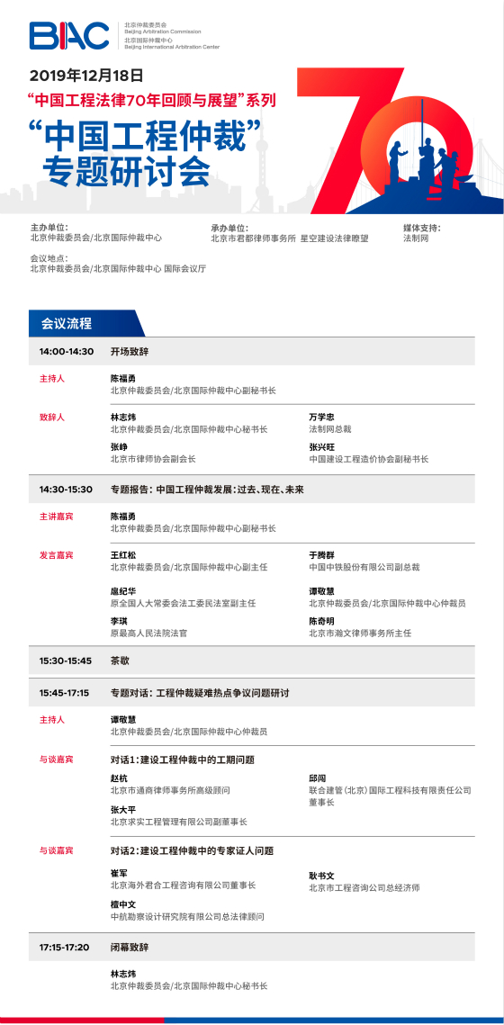 恰逢新中国成立七十周年之际,北京仲裁委员会/北京国际仲裁中心主办“中国建设工程法律70年回顾与展望系列:中国工程仲裁主题研讨会”,组织行业专家就我国建设工程仲裁历程进行梳理、就现状进行研讨、就发展进行展望,以期总结发展经验、深化行业共识、共应未来挑战。