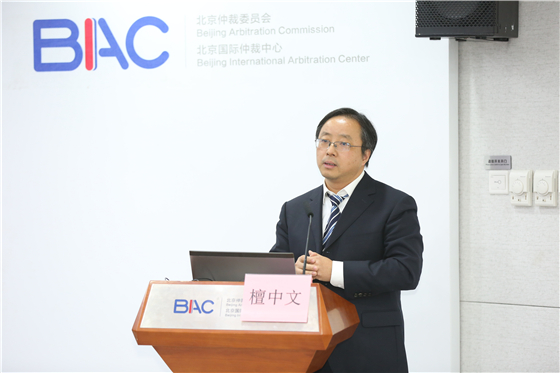 于腾群先生围绕“进一步发挥仲裁优势,促进建设工程纠纷解决”主题进行发言。其指出,工程行业发展迅速,且前景广阔;法律风险已成为工程企业重大挑战,需要仲裁发挥争议解决作用,工程仲裁则相应具有专业性、自主性、保密性等优势。作为北仲资深仲裁员,于腾群先生最后寄望“北仲工程仲裁旗帜高高飘扬”。
