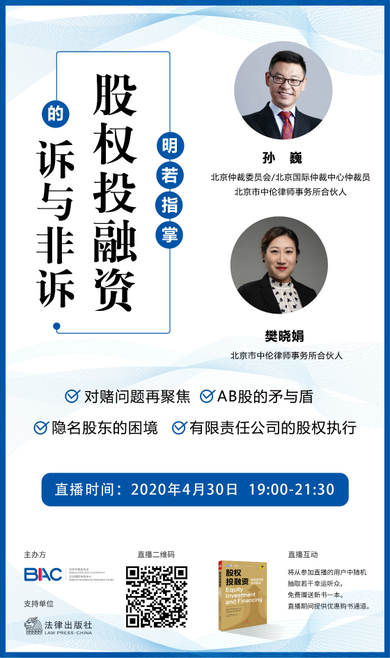 本次直播讲座特邀该书两位作者,以书中内容为底稿,结合最新热点话题和实践案例,透析股权投融资交易全流程中的潜在风险,并基于自身经验提供应对方案。