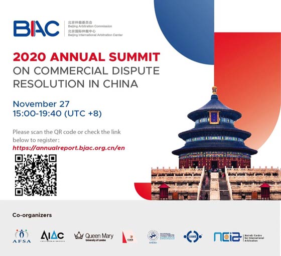 2020年11月27日下午15:00(北京时间),北京仲裁委员会/北京国际仲裁中心将联合伦敦大学玛丽皇后学院、御准仲裁员协会、亚洲国际仲裁中心、南非仲裁基金会、开罗区域国际仲裁中心、内罗毕国际仲裁中心和美国司法仲裁调解服务中心,以线上方式举办“2020中国商事争议解决年度观察海外发布会”。我们诚邀您的参与,会议注册请点击此处。